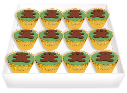 24 Cupcakes zum Thema Kindergeburtstag dekoriert mit Fondant. Die Cupcakes können Sie ungefüllt bestellen oder mit einer unseren leckeren Cremefüllung. Unsere Cupcakes sind mit weißer Schokolade überzogen und mit unserem hochwertigen Fondant eingedeckt. Geliefert werden die Cupcakes mit hochwertigen Manschetten in mehreren speziell hergestellten Boxen. Als Beilage erhalten Sie einen praktischen Cupcake-Ständer für die perfekte Präsentation Ihrer Leckereien!