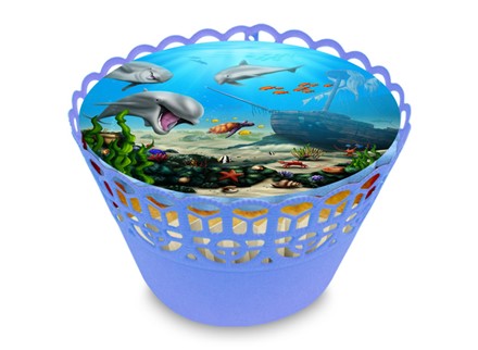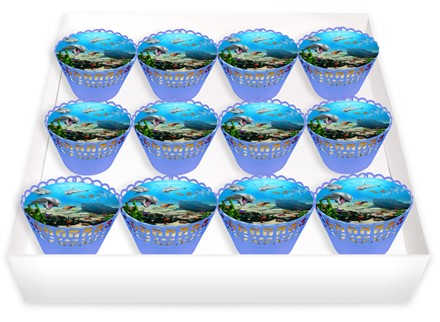 Delfine sind beliebt und immer im Trend, sowohl bei Kindern als auch bei Erwachsenen. Passend zu unserer bedruckten Delfin Torte gibt es nun auch Delfin Cupcakes. Für eine große Feier kann man die Torte UND die Cupcakes zusammenbestellen. So werden ganz viele Leckermäulchen auf einmal glücklich gemacht. Wenn ihr in einem kleineren Kreis feiert, oder irgendwo anders als zu Hause, passen die kleinen Törtchen am besten. Weil diese in Muffinförmchen gebacken und dazu noch mit schönen Papier-Manschetten versehen werden, kann man diese Küchlein ganz einfach genießen - ohne Schneiden und ohne Teller und Besteck. Wir verschicken die Cupcakes in Papier-Schachteln eingepackt, darin kann man die überall mitnehmen. Wenn sich die Gelegenheit ergibt, können die Cupcakes auf die beigelegte Etagere zur schönen Präsentation aufgestellt werden.