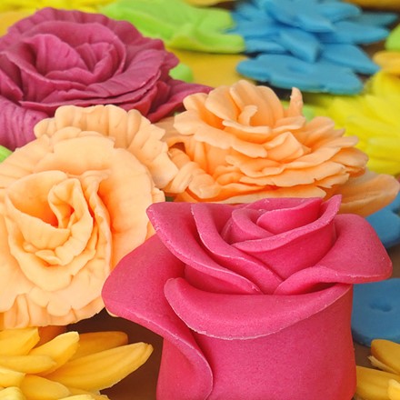 mit handgefertigten Blumen