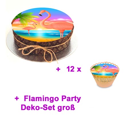 Flamingo Kuchen Set mit Cupcakes Flamingo Motiv und Deko bestellen
