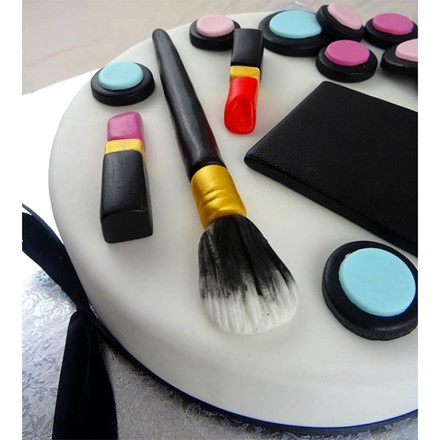 Diese tolle Make-Up-Torte kann personalisiert werden, indem ihr uns ein Foto oder Logo per E-Mail zuschickt. Diese Grafik wird dann auf das schwarze Kästchen gedruckt - mit Lebensmittelfarben.