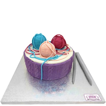 Unsere Handarbeit-Torte für alle Fans der selbstgestrickten Unikate ist auch ein Unikat, wird diese doch auch in Handarbeit angefertigt. Die bunten Wollknäuel aus Fondant zieren die Torte oben. Auf Wunsch können wir die Torte mit einem Namen oder kurzen Grußtext individualisieren.