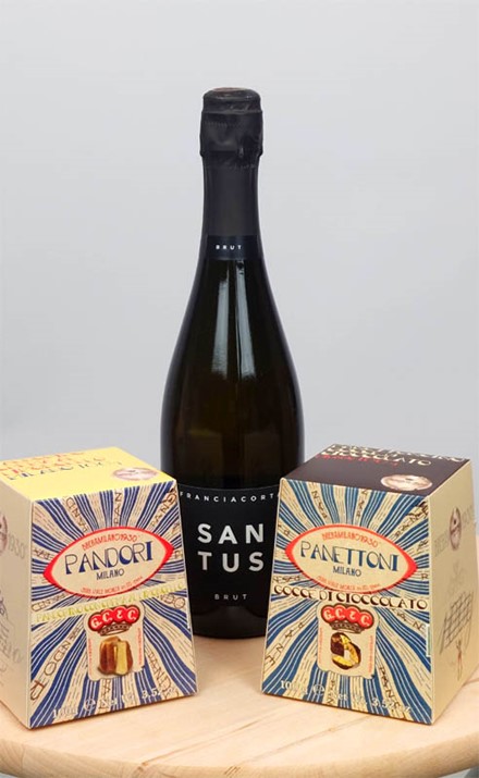 Geschenkset mit Santus Brut, Pandoro und Panettone