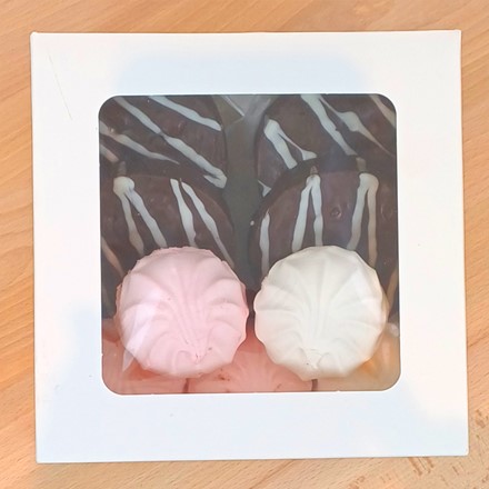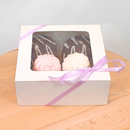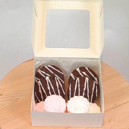 Ein tolles kleines Geschenk oder Aufmerksamkeit zu vielen Anlässen! 4 saftige Mini-Kuchen (in unterschiedlichen Geschmacksrichtungen nach Vorrat) und 5 Stück Sefir (ja aus 2 Hälften) werden in eine Schachtel mit Sichtfenster eingepackt und mit Satinband dekoriert. Diese Geschenkbox wird in einem Umkarton versendet. Eine hübsche Karte kann dazu bestellt werden. Deinen Wunschtext kannst du in das entsprechende Textfeld eintragen.
