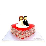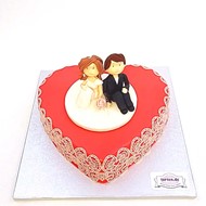 Eine schöne Hochzeitstorte gehört auf jeden Fall zu einer Hochzeitsparty. Es gibt klassische Variante und es gibt kreative Lösungen. Wir versuchen jeden Geschmack zu treffen - mit der einen oder mit der anderen Torte aus unserem Online-Sortiment. Diese rote Herztorte mit einer feinen Spitz-Bordüre sieht sehr festlich aus. Die eleganten handgefertigten Dekorationen tragen etwas persönliches in sich: das sind symbolisch dargestellte Braut und Bräutigam verbunden mit einem Herz. Die Hauptdarsteller der Hochzeitsfeier und ihre Gäste werden diese persönliche Note hoffentlich verstehen und schätzen. Und bevor die Torte von dem jungen Brautpaar angeschnitten wird, kann die Brautpaarfigur aus Zuckermasse abgenommen werden. Diese kann einige Zeit aufbewahrt werden - als eine schöne Erinnerung an das Fest der Liebe.