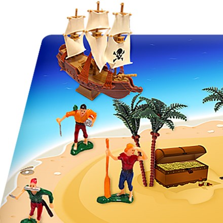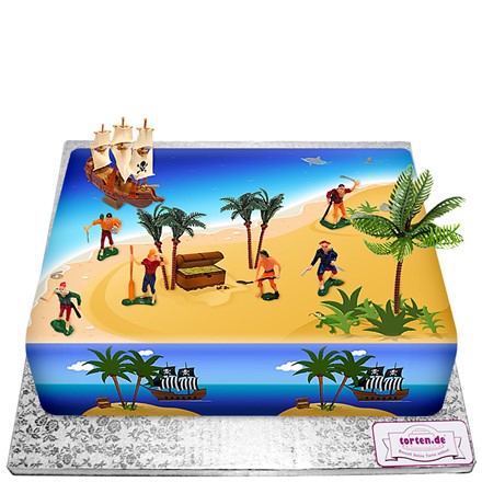Kleine Entdecker werden diese Piratentorte einfach lieben! Bunte Farben und viele lustige Figuren sorgen für eine fröhlich-abernteurliche Atmosphäre. Mit den Piraten-Figuren kann man später sogar noch spielen, denn diese sind nicht zum Verzehr geeignet. Unsere Piraten Torte wird mit hochwertigen Lebensmittelfarben bedruckt.