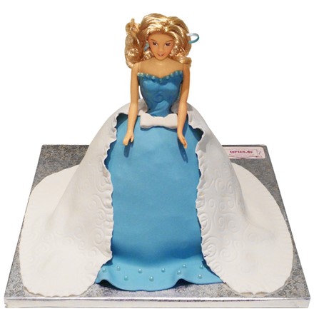 Das ist ein wirklich besonderer Kuchen: in einer speziellen Form gebacken und mit dem Puppenstecker verziert wird er wie per Zauberhand zu einer wunderschönen Prinzessin in einem weiten Kleid. Eine weiße festliche Schleppe rundet das perfekte Aussehen ab. Wir haben dieses Kleid für die zauberhafte Prinzessin selbst mit Liebe zum Detail kreiert. Unsere Prinzessinnen gibt es mit blonden und braunen Haaren. Der Kleid-Kuchen wird mit einer leckeren Füllung nach deiner Wahl befüllt.