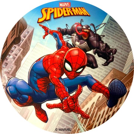 Mit unserer Torte mit "Spiderman" Motiv werden kleine und große Spiderman Fans auf ihre Kosten kommen. Die rot-blaue Torte, geschmückt mit einem essbaren Lizenzaufleger, mit dem beliebten Superhelden wird jede Party retten. (Aufleger lizensiert über DekoBack, Jacobi Decor.)