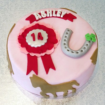 Pferde-Fans aufgepasst: diese hübsche Torte mit Hufeisen und einer Turnierschleife wird euch und euren Gästen viel Spaß bei der Feier bereiten. Diese Glücksbringer-Torte kann wunderbar individualisiert werden: mit einem Namen und Alter des Geburtstagskindes. Alle Dekorationen dieser Pferdetorte sind essbar, da sie aus Fondant hergestellt werden. Den Fondant-Hufeisen kann man aber auch aufheben - wie man das von Marzipanfiguren kennt.