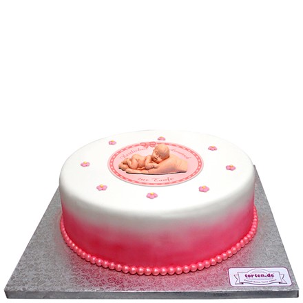 Rosa Tauftorte mit Baby