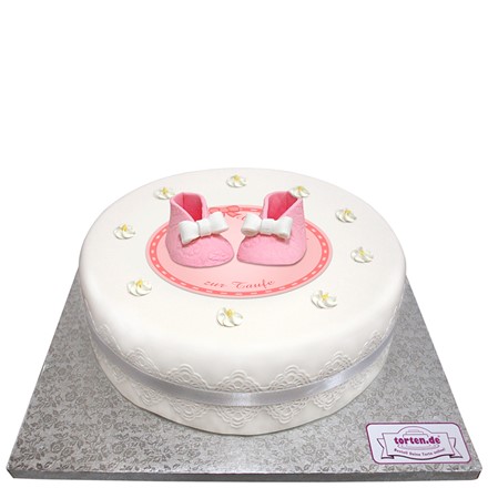 Tauftorte mit rosa Babyschuhen