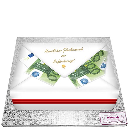 Diese Beförderungstorte wird mit Lebensmittelfarbe komplett bedruckt. Die Geldscheine sind nicht echt, sondern auch gedruckt. Das witzige Design und der tolle Geschmack machen diese Torte zu einem echten Highlight.