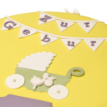 Unsere Baby-Torte bieten wir in neutralen Pastellfarben an, so dass sie für Mädchen genauso gut bestellt werden kann, wie für Jungen. Eine fröhliche bunte Torte zur Geburt eines Mädchens oder eines Jungen. Alle Dekorationen sind essbar, diese sind aus Fondant handgefertigt. Auf den Rahmen können wir den Namen des Babys schreiben. Diesen kann man unter Zubehör zu dieser Torte eingeben.» Zutaten + Zusatzstoffe