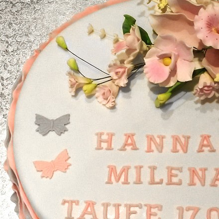 Torte zur Taufe mit Zuckerblumen in unserem Tortenshop kaufen