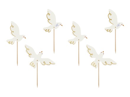 Cupcake-Dekorationen - Tauben, Set enthält 3 Muster à 2 Stück, Farbmix, Höhe ca. 14,5 cm. Produkt zur Selbstmontage. (1 Packung / 6 Stk.)