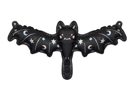 Fledermaus-Folienballon, schwarz mit holografischem Druck, Maße unaufgeblasen ca. 40,5 x 13 cm (16 x 5"), Maße nach dem Aufblasen ca. 35 x 12 cm (14 x 4,5"). Zum Aufblasen mit Luft. Im Set ist ein Strohhalm enthalten.