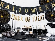 Halloween-Banner, aus schwarzem Papier, zum Selbstaufbau. Im Set sind Buchstaben und ca. 2,5 m Band enthalten, Maße nach dem Falten: Höhe ca. 20 cm, Länge ca. 175 cm.