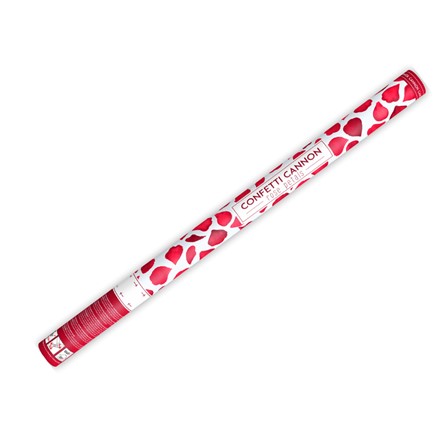 Die Konfettikanone schießt künstliche Rosenblätter in bordeauxrot, 80 Zentimeter lang. Einfache Bedienung.