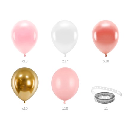 Ballongirlande in Weiß, Rosa und Gold, ca. 200 cm lang