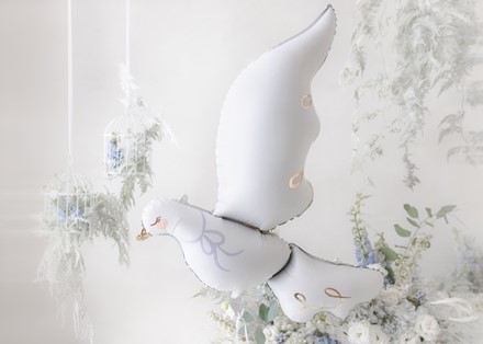 Dieser stylische Folienballon Taube in weiß und gold ist ein wunderschöner und unvergesslicher Begleiter für eure Feiern zu verschiedenen Anlässen: Taufe, Kommunion, Hochzeit und vielen anderen. Unser Tipp für eure Hochzeit: mehrere Tauben Folienballons kaufen, mit Helium befüllen, dann steigen sie schnell nach oben. Die Tradition, weiße Tauben fliegen zu lassen, wird somit ohne jede Gefahr für echte Tauben gewährt.