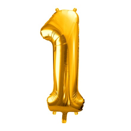 Folienballon Zahl 1 in metallic gold. Größe vor dem Aufblasen ca. 100 cm, Größe nach dem Aufblasen ca. 86 cm. Geeignet zum Aufblasen mit Luft und Helium.
