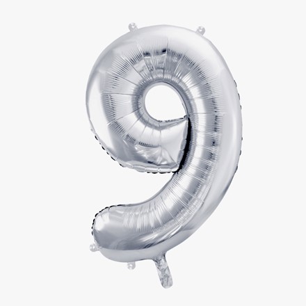Großer Folienballon Zahlenballon Zahl ''9'' in silber