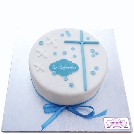Suchst du die perfekte Torte zur Konfirmation? Wie wäre es mit einer eleganten und schlichten Variante in blauen Tönen? Das passt zu Jungen und zu diesem kirchlichen Anlass. Ein tolles Geschenk für dein Patenkind oder Enkel - diese Torte wird zum Hingucker auf der heimischen Kaffeetafel. Für die Erinnerungsfotos lässt man diese Torte am besten personalisieren - mit dem Namen und dem Datum zum Beispiel.
