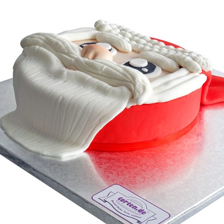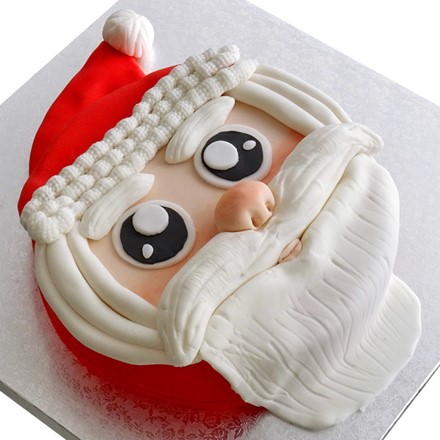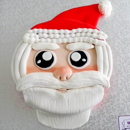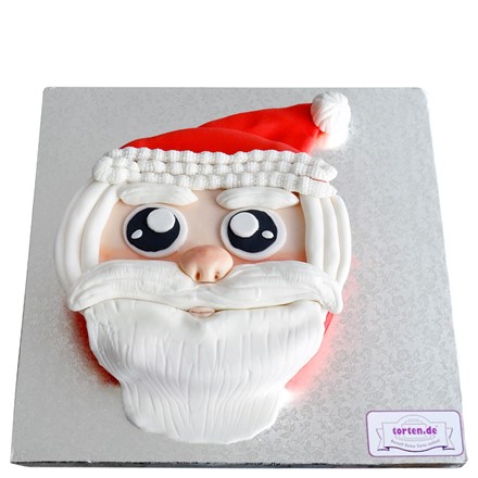 Zum Nikolaus-Tag und zur Weihnachtszeit kann man diese lustige Torte sehr gut gebrauchen! Ausschließlich in Handarbeit entsteht aus Kuchen, Creme und Fondant das weltbekannte Gesicht. Der weiße Bart, die rote Mütze - alles nur aus weißem und farbigem Fondant.